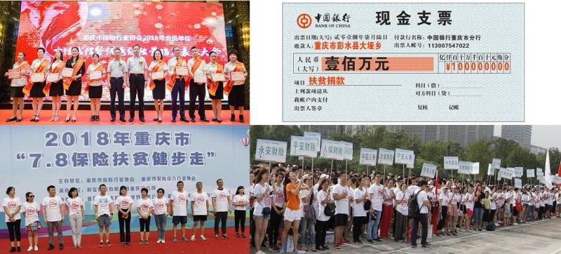 “7.8”期间,重庆协会表彰了85名优秀保险营销员和十佳诚信保险营销员,以榜样的力量引领行业前行;举行了“高净值人群财富管理”讲座,向400余人诠释了保险的功能作用;介绍了“警保联动”、诉调对接等创新服务,展示了保险保障背后的科技和效率;倡议扶贫捐款,收到捐款100余万元,用爱心帮助困难群众点燃希望;倡导扶贫健步走,累计捐赠步数2.86亿步,迈步为扶贫助力。7月8日,1200余名保险业健儿参加健步走比赛,将重庆市“7.8”活动推向高潮。“7.8”期间,在全市1000部电梯电视投放了宣传片,789个保险公司职场张贴了“7.8”海报和横幅。重庆新闻媒体共用23条电视新闻,56次电台广播,32条报纸新闻,68条网络新闻对活动进行报道,向社会公众诠释了“守护美好,从一份保障开始”。