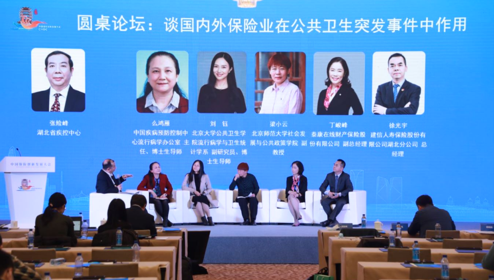 中国疾病预防控制中心流行病学办公室主任么鸿雁,北京大学公共卫生学院博士生导师刘珏,北京师范大学社会发展与公共政策学院梁小云博士生导师,泰康在线财产保险股份有限公司副总经理丁峻峰,建信人寿保险股份有限公司湖北分公司总经理徐光宇等业内外专家学者和企业高管围绕“国内外保险业在公共卫生突发事件中作用”主题,进行高端对话,开展圆桌讨论,嘉宾们建言献策,希望保险业进一步加强在疾病预防,风险管理等的研究 世界杯足球投注平台,积极探索建立业内外合作机制,在公共卫生事件中发挥更大的作用。